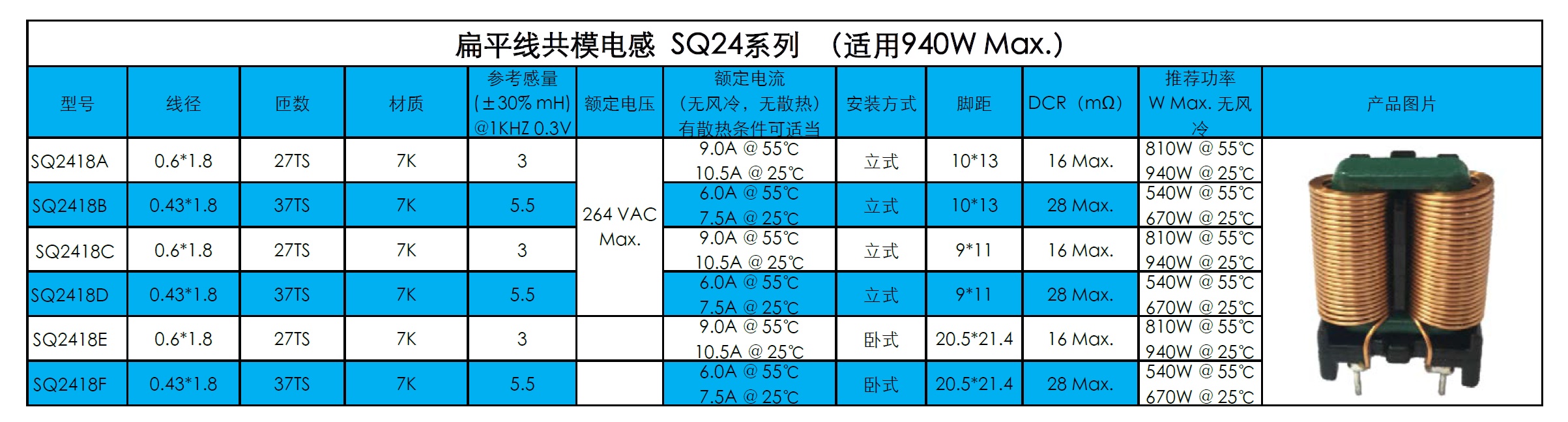 立式方形闭合式磁芯设计,扁平线自动绕制。避免短路风险,绝缘强度高。
